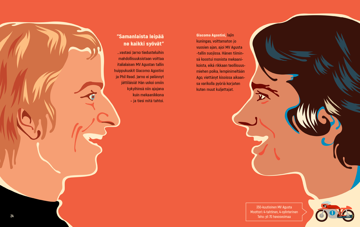 My debut nonfiction picture book – one I wrote and illustrated –The Flying Finn – Life of Jarno Saarinen was highly commended at the World Illustration Awards in 2019. The book was chosen a finalist for the Sports Book of the Year 2018 in Finland. The second nonfiction picture book I illustrated, Rally Team, was chosen to the collection of the Most Beautiful Books of 2021. It received a Merit Award in the 3×3 International Illustration Annual No.19.