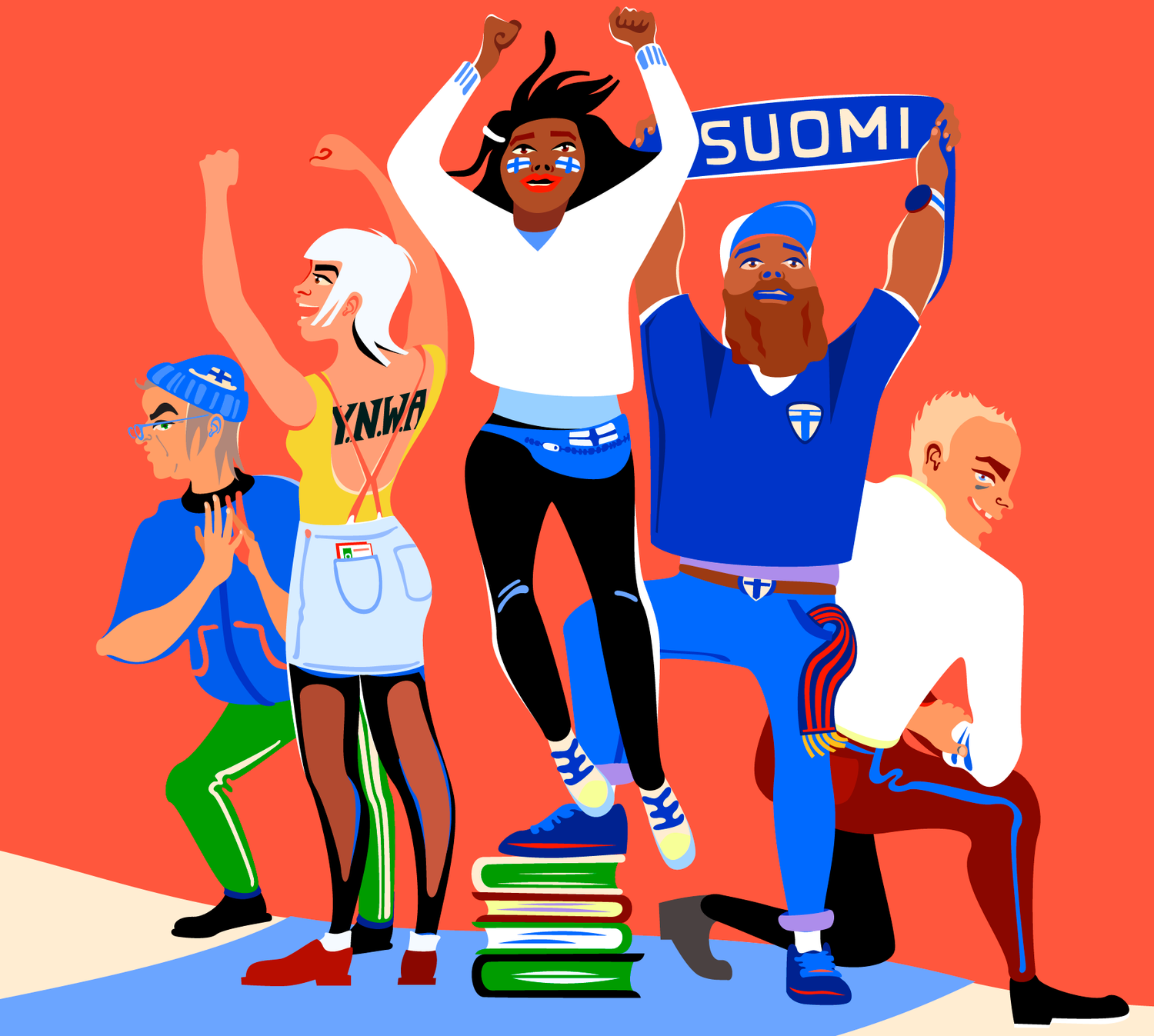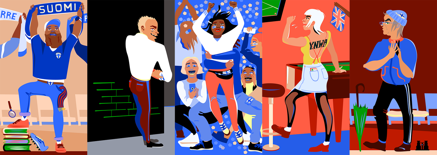 Testaa millainen futisfani olet -kuvitukset EM-kisojen kynnyksellä, 2021. AD: Jesper Vuori